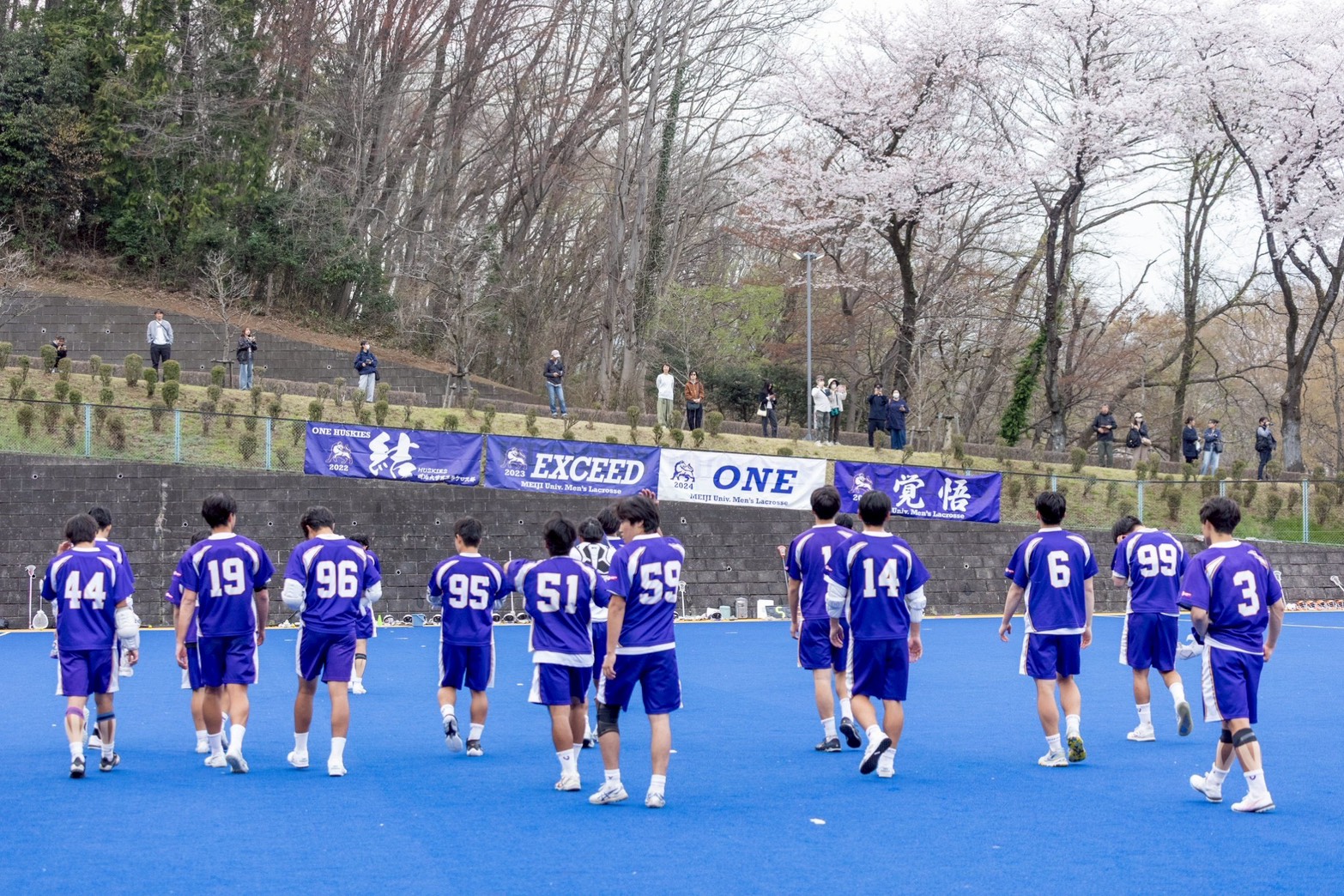 法政大学と対戦したHuskies。この試合を勝てば、春の最強決定戦へのプレーオフ進出が決まるという重要なゲームである。アップ前には部員全員で校歌を歌い、勝利への気持ちを1つにした。